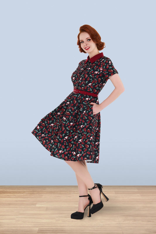 Betty Cherry Dress Black