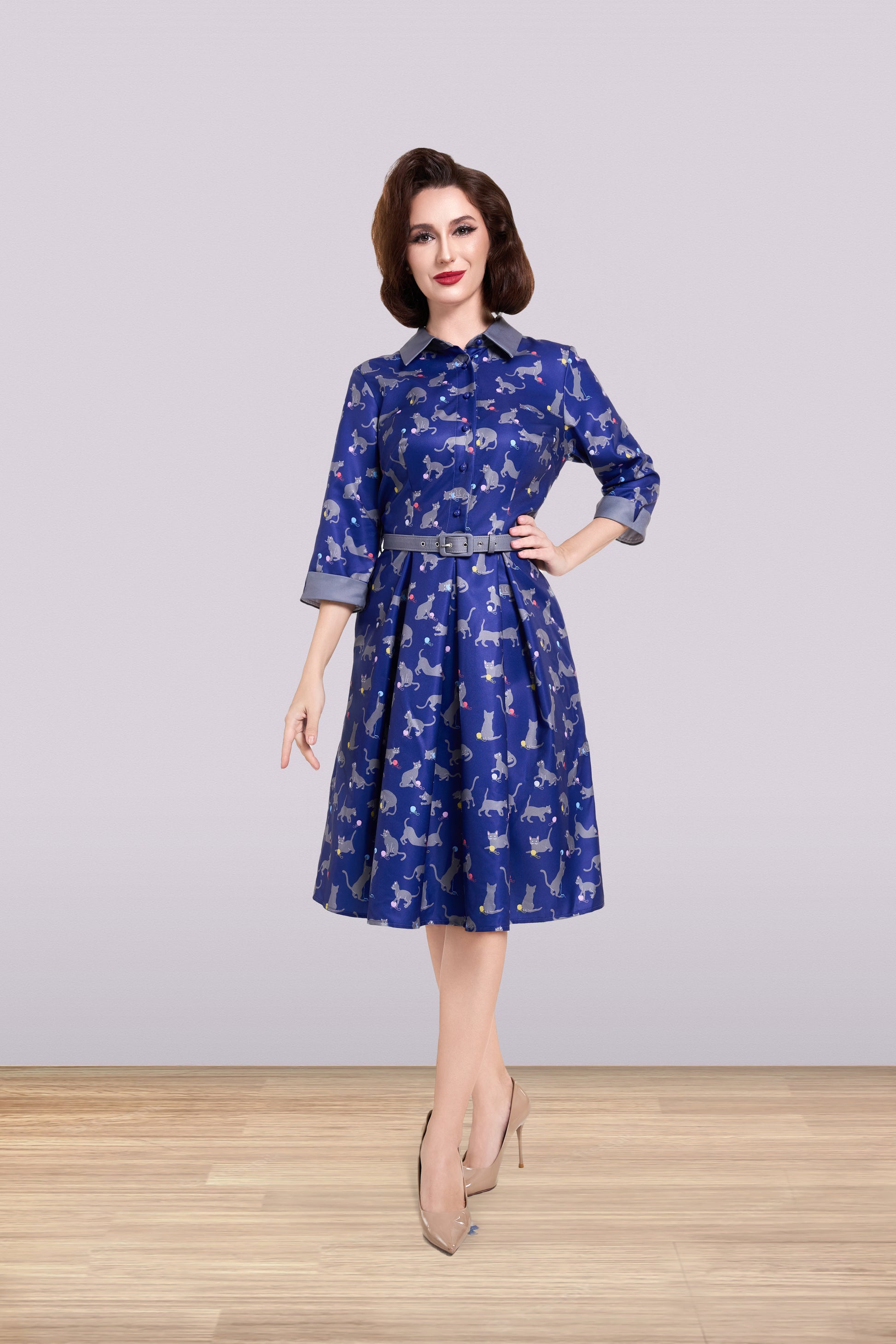 Embrace timeless elegance with this charming Betty Cat Blue Dress, featuring graceful 3/4 sleeves and a flattering silhouette inspired by vintage aesthetics. The coordinating belt cinches the waist for a refined, polished look that transitions effortlessly from day to evening. Perfect for those who appreciate classic style with a contemporary twist, this piece captures the essence of retro glamour while remaining versatile enough for any occasion. 100% Polyester