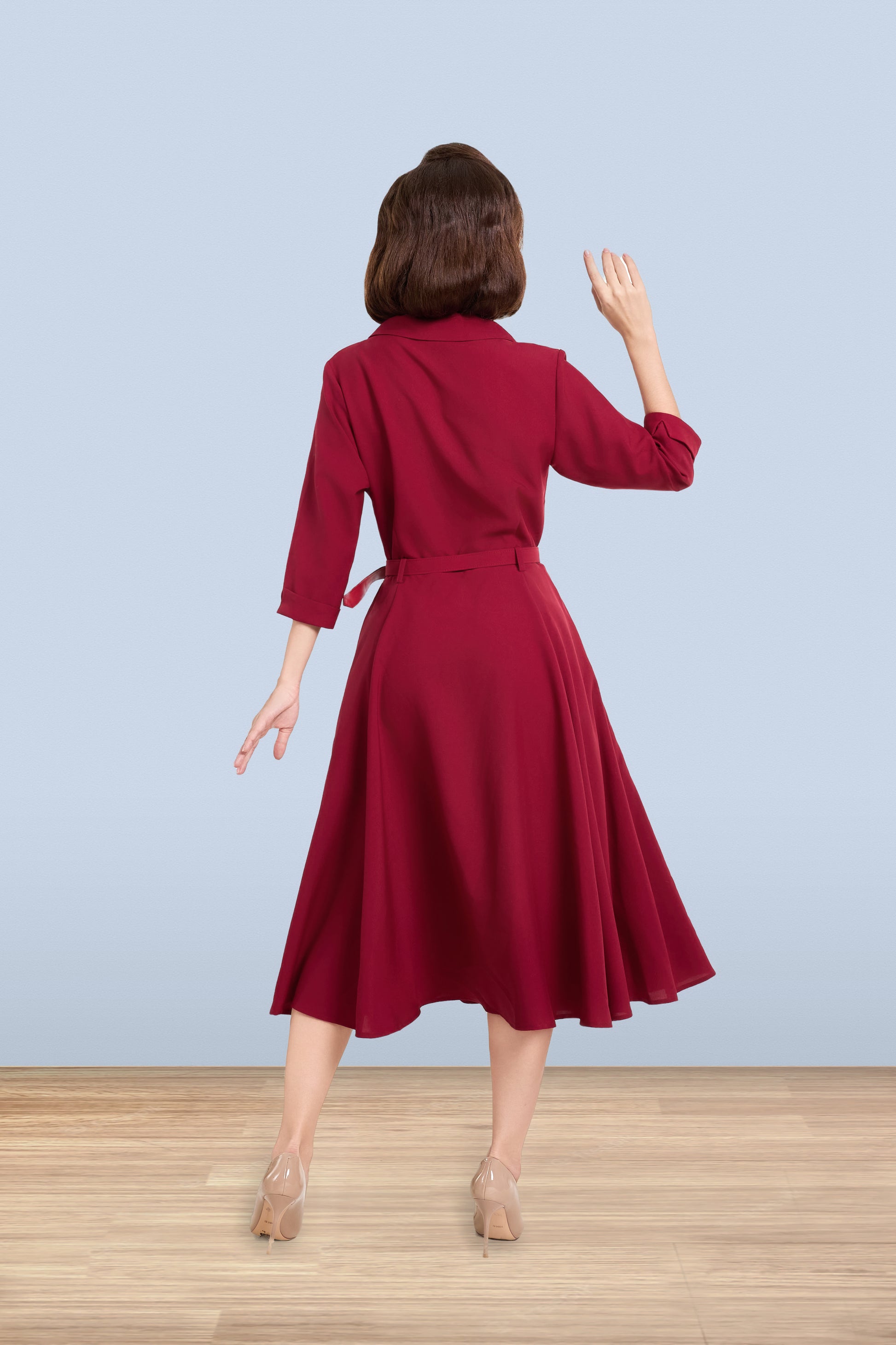 The Christine Flared Dress is a vintage-inspired piece that captures timeless elegance. Made from 100% polyester, this dress features a graceful flared cut and three-quarter sleeves for a sophisticated silhouette. The coordinating belt allows you to define your waist and customize the fit to your preference. This dress delivers classic style with modern convenience, making it a versatile addition to any wardrobe.