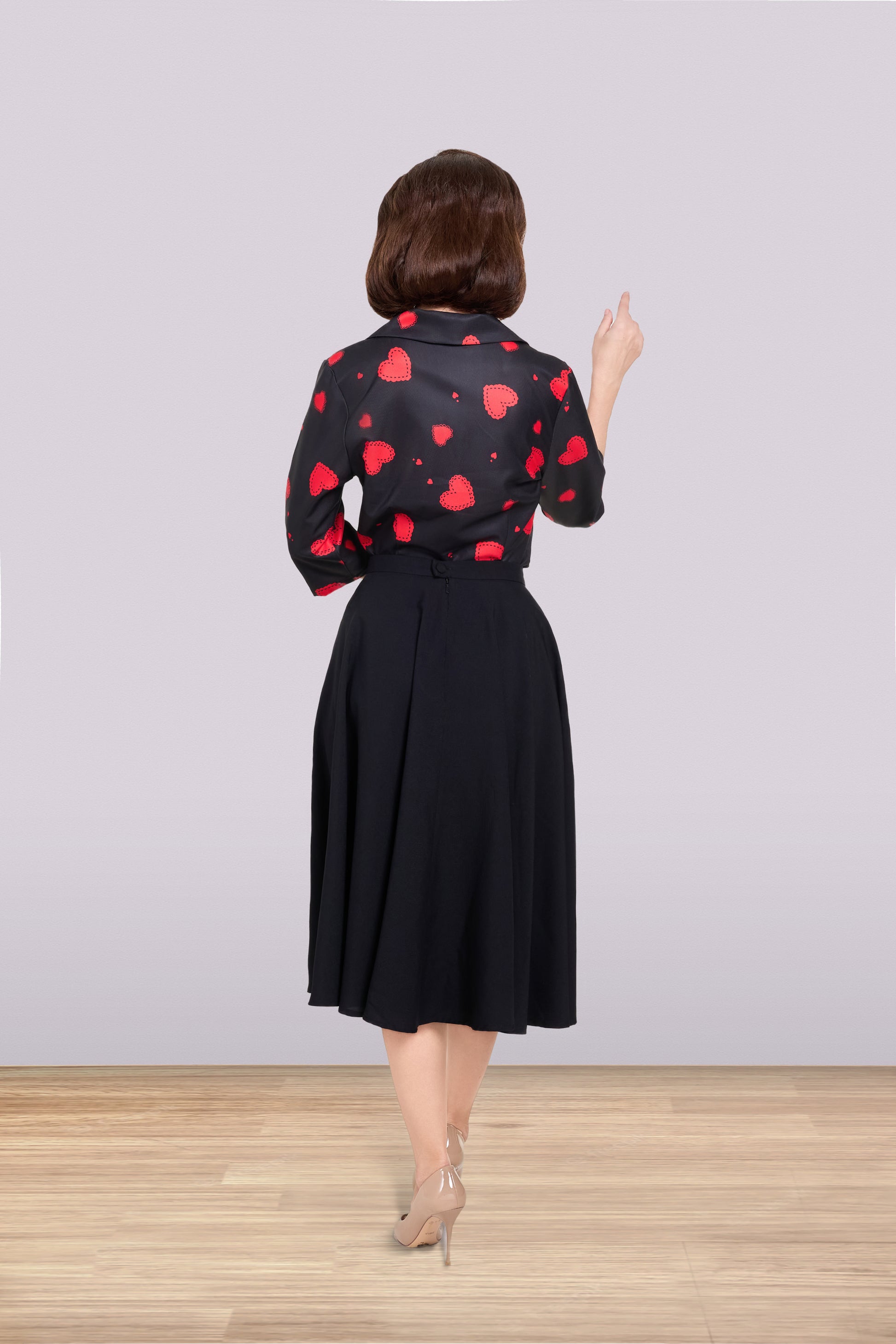 Adorable hearts take center stage on this charming 3/4 sleeve blouse! Perfect for adding a touch of whimsy to your everyday wardrobe. The three-quarter length sleeves offer versatile styling options—dress it up with a skirt or keep it casual with jeans. Whether you're heading to brunch or a casual date night, this playful piece brings instant personality to any outfit. A modern take on vintage-inspired fashion that celebrates the joy of dressing up! 100% Polyester
