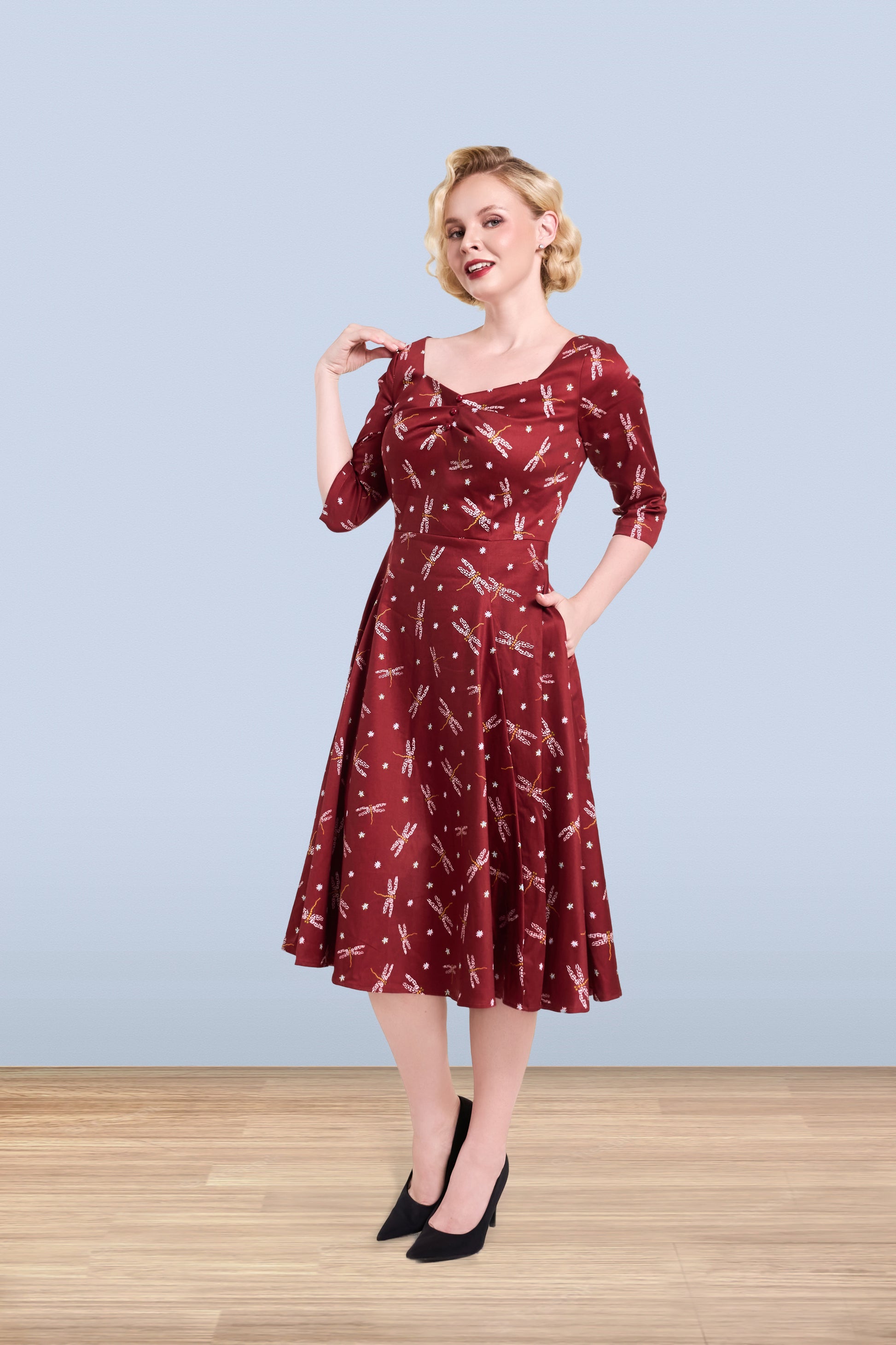 Turn heads with the Linda Dragonfly Dress 3/4—a fearless choice for those who dare to stand out. This captivating design features an exquisite dragonfly print that adds an element of intrigue and sophistication. The 3/4 sleeves strike the perfect balance between mystery and allure, while the expertly tailored cut hugs your silhouette in all the right ways. Whether you're stepping into a night out or making waves at an event, this dress is your weapon of choice for unapologetic confidence. Own your power.