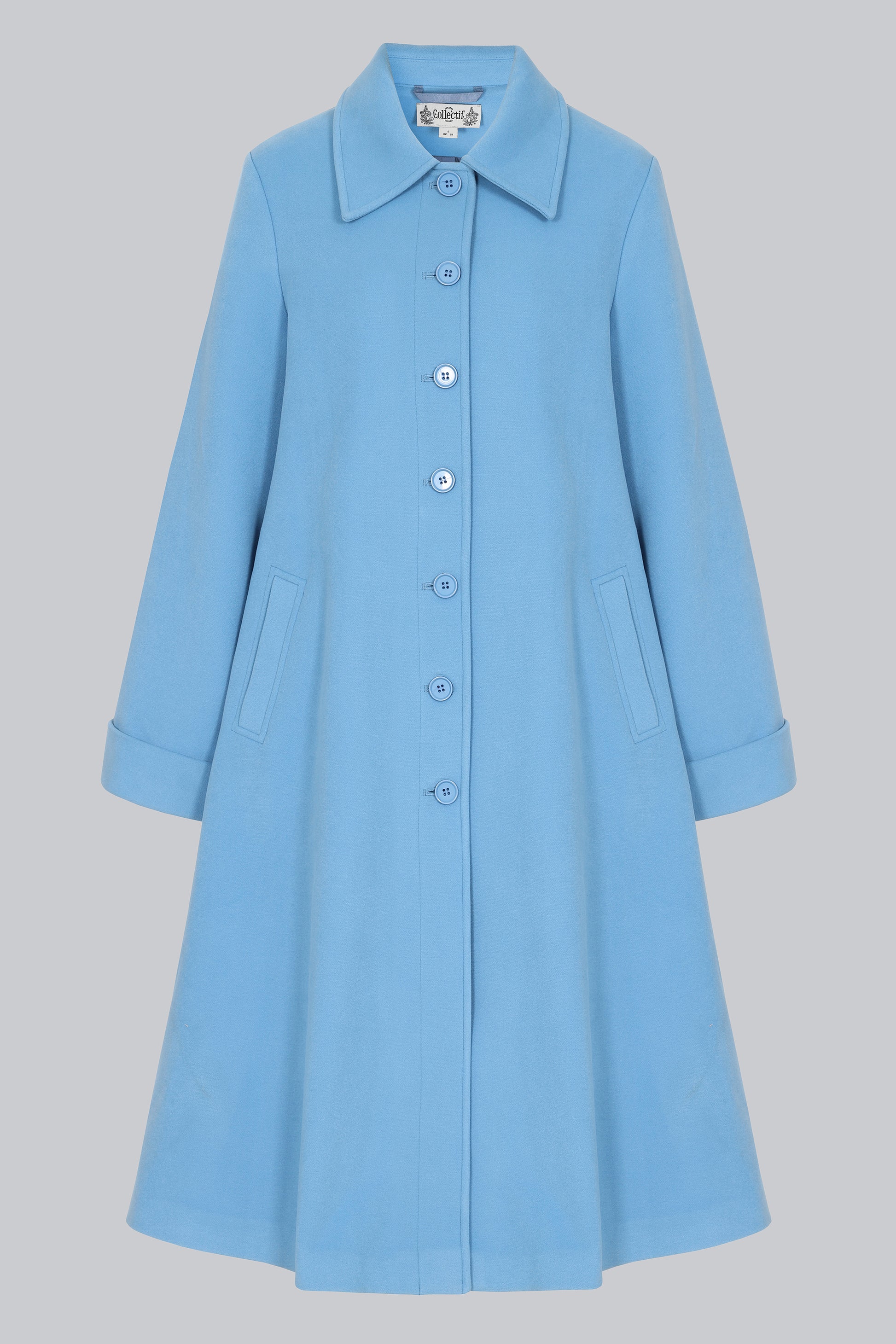 Step into the new season with the Sansa Swing Coat - a perfect blend of chic style and cosy comfort. Featuring fabulous flared sleeves and a super cute collar all wrapped up in a luxuriously soft fabric in the most wonderful shade of blue. Style with coordinating accessories for a 50’s inspired look, or drape over your denim for a more relaxed fit. The possibilities are endless! Approximate Total Length (Size 10): 105 cm / 41.34 inches Fit advice: Fit is true to size Fabric: 62% Polyester 33% Viscose 5% Elastane Washing Advice: Machine Washable at 30 Degrees