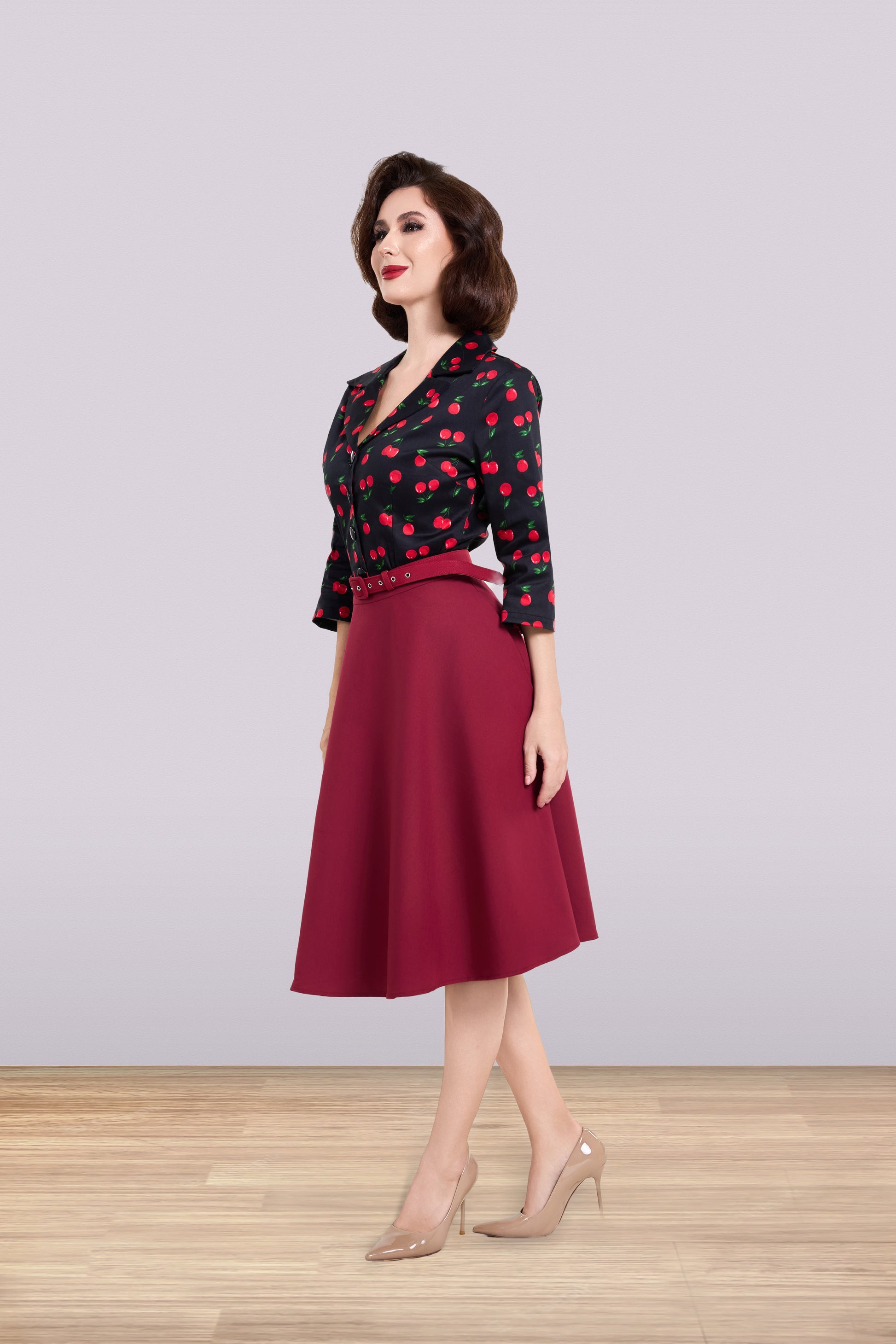 Unleash your bold side with the Julia Cherry Blouse 3/4—a statement piece that commands attention. Featuring a striking cherry hue that refuses to blend in, this blouse pairs perfectly with vintage-inspired styling for those ready to make waves. The three-quarter sleeves offer a modern twist on classic elegance, while the flattering cut ensures you'll turn heads wherever you go. Perfect for anyone brave enough to embrace color and confidence.