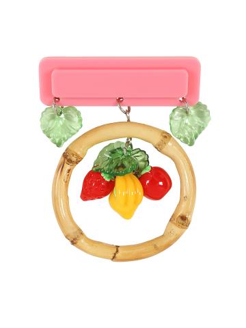 • Features bamboo hoop with dinky fruit (red apple, strawberry, lemon and bananas) and translucent green leaves